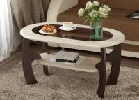 Современный журнальный столик "Маджеста-2", привлекающий внимание неординарным дизайном, оригинальным сочетанием оттенков и красивой вставкой из тонированногостекла. Его тёмные фигурные ножки красиво сочетаются со светлой полочкой и столешницей, образуя единую композицию. Столик не отличается большими габаритами, но при этом на его столешнице и полке можно разместить немало книг, газет, журналов и других предметов.